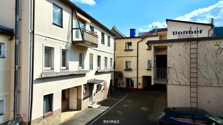 Ein Highlight des Objekts ist der Innenhof, der mehrere Garagen und zusätzliche Parkplätze umfasst – eine wertvolle Erweiterung für zukünftige Nutzungsmöglichkeiten.