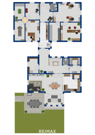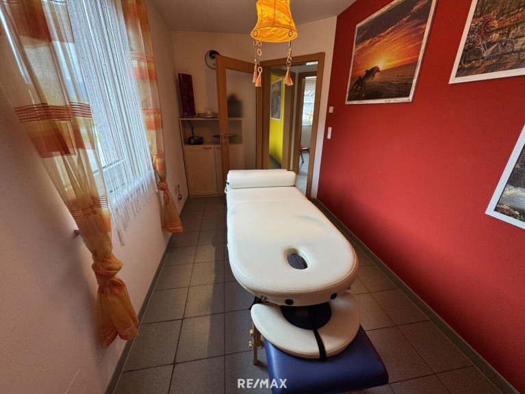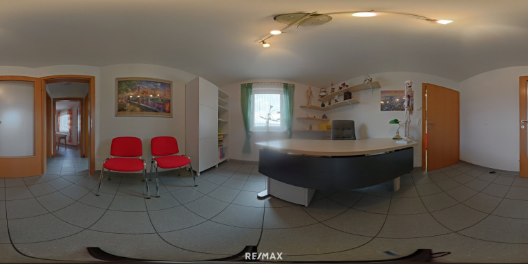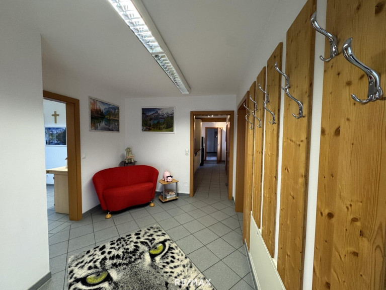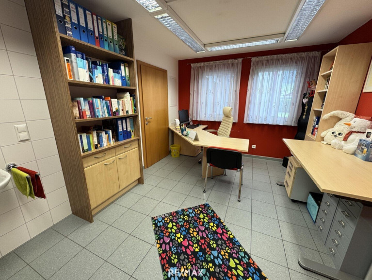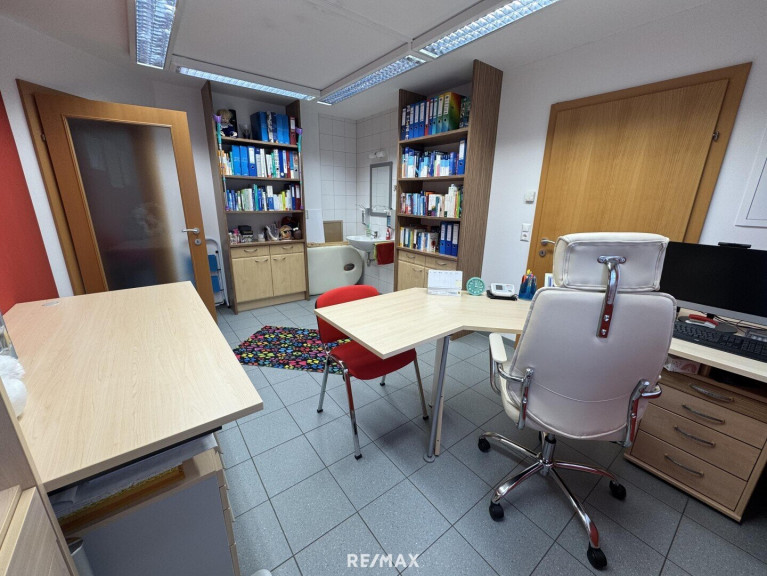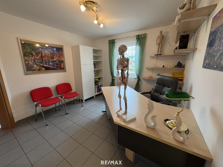 Im Erdgeschoss befindet sich ein Büro- bzw. Ordinationstrakt mit ca. 117 m², ideal geeignet für Praxis, Kanzlei oder ein modernes Büro. Die Räume sind vielseitig nutzbar und bieten eine professionelle Infrastruktur direkt im Haus.