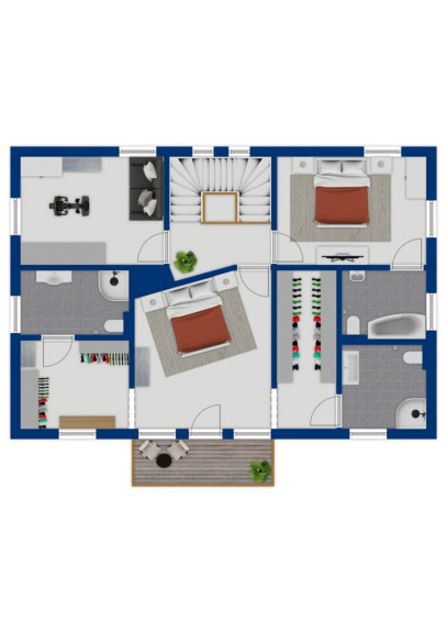 • Obergeschoss: Elternschlafzimmer mit zwei Schrankräumen und zwei Bädern für höchsten Wohnkomfort; zusätzlich ein Kinderzimmer mit eigenem Bad sowie ein Gästezimmer.