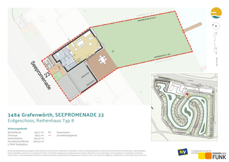 Sich den Traum vom Haus am See erfüllen und 365 Tage Urlaubsfeeling genießen. Das ist möglich im Sonnenweiher Grafenwörth, ca. 30 Fahrminuten von der Stadtgrenze Wiens entfernt, im Herzen der Region Wagram. Ein nachhaltiges, gut durchdachtes Gesamtkonzept, erstklassige Architektur, hochwertige Ausstattung und viel Grünraum fördern das besondere Lebensgefühl am Sonnenweiher. Die Verkehrsanbindung Richtung Wien und Krems (S5, Stockerauer Schnellstraße) sowie nach St. Pölten (S33) ist ausgezeichnet. In der Gemeinde Grafenwörth gibt es ausreichend Einkaufsmöglichkeiten für Güter des täglichen Bedarfs, Kinderbetreuungseinrichtungen und Schulen. In diesem wunderbaren, regionalen Umfeld eingebettet, entstehen an einem mäanderförmig angelegten, ca. 36.000 m² großen See in mehreren Bauabschnitten insges. 170 Wohnimmobilien der Sonderklasse in Form von Einfamilien-, Doppel- u. Reihenhäusern im Eigentum.