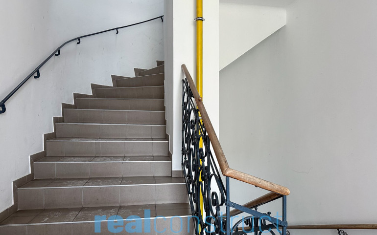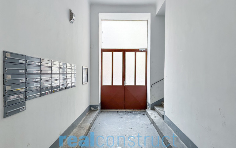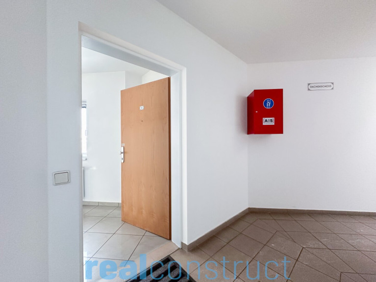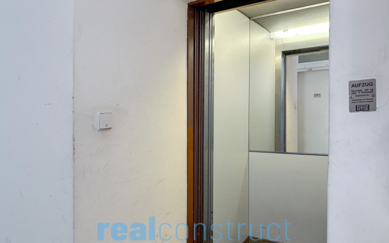 Der Aufzug führt bis in den 4. Stock, die Wohnung selbst befindet sich eine Etage darüber und ist über das Stiegenhaus zu Fuß erreichbar. Die Wohnung ist daher nicht gänzlich barrierefrei.