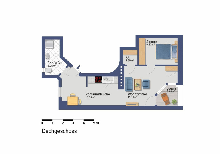 Die durchdachte Raumaufteilung macht die Wohnung sowohl für Singles als auch für Paare besonders attraktiv.