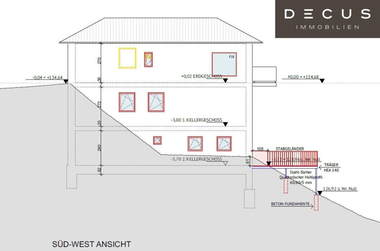 Die Wohnfläche von rund 186 m² ist durch die Hanglage optimal verteilt: