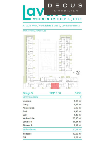 Für weitere Informationen und Besichtigungen steht Ihnen gerne Frau Linda Schmidtberger unter der Mobilnummer +43 660 75 75 013und per E-Mail unter schmidtberger@decus.at persönlich zur Verfügung.