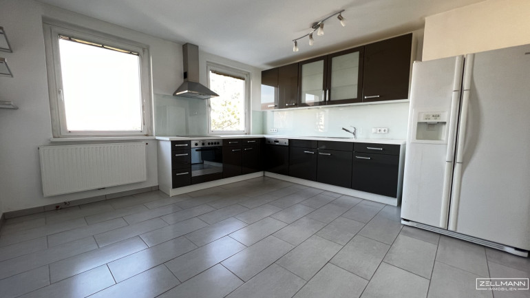 Ein echtes Highlight der Wohnung ist die großzügig geschnittene Küche. Sie bietet nicht nur viel Arbeitsfläche und Stauraum, sondern vor allem ausreichend Platz für einen großen Esstisch. Damit wird die Küche zum zentralen Treffpunkt des Alltags – perfekt für gemeinsames Kochen, Essen und gesellige Abende.