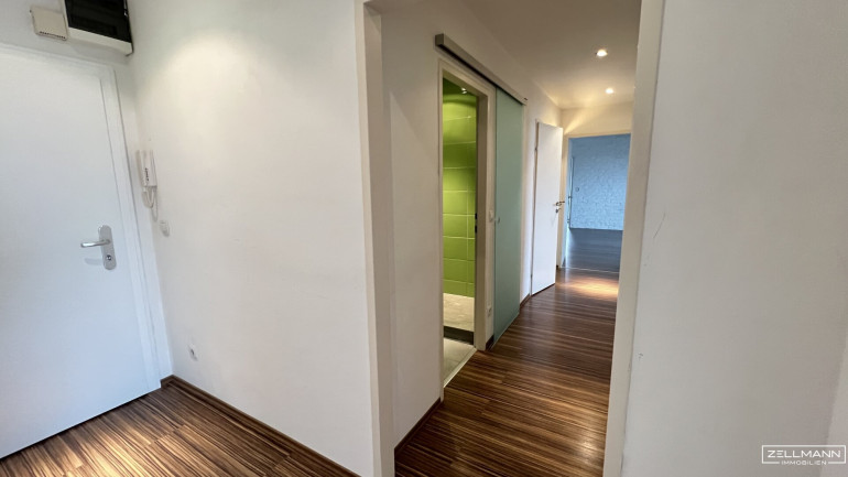 Bereits das geräumige Vorzimmer bietet ausreichend Platz für Garderobe und Stauraum und schafft einen angenehmen ersten Eindruck. Von hier aus sind alle Räume gut und zentral begehbar. Zwei Schlafzimmer stehen zur Verfügung, die sich sowohl als klassische Schlafräume als auch als Kinder-, Gäste- oder Arbeitszimmer eignen. Besonders praktisch ist, dass eines der Schlafzimmer über einen begehbaren Schrank verfügt, der zusätzlichen Stauraum schafft und für Ordnung sorgt.