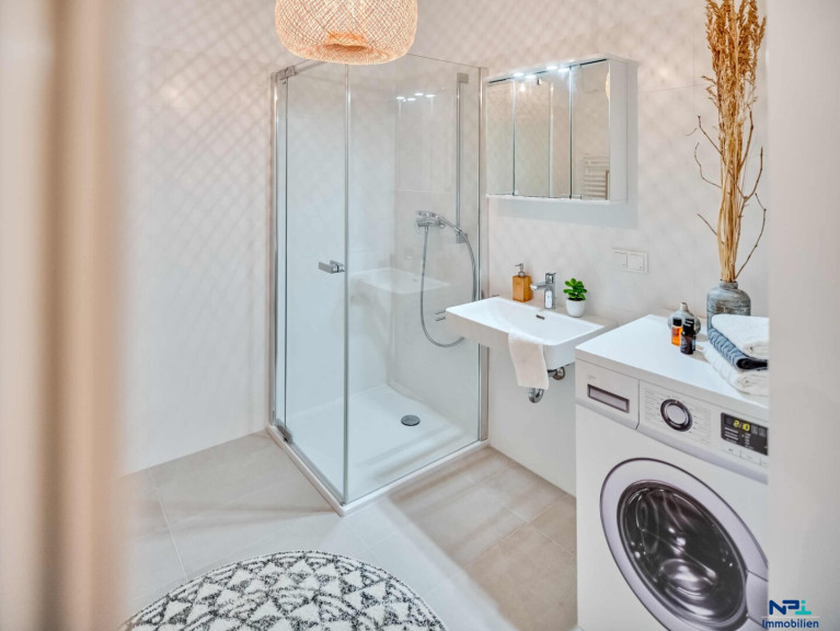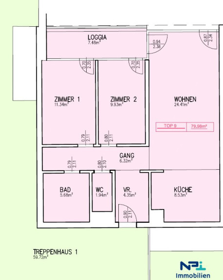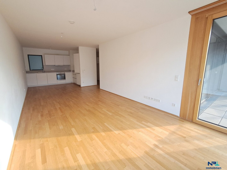 Es steht Ihnen eine 3-Zimmer-Wohnung im 1. Liftstock zur Verfügung, welche 79,98 m² Wohnnutzfläche inkl. 7,48 m² Loggia aufweist. Die Wohnung zeichnet sich vor allem durch das großzügige Raumgefühl und die Verarbeitung hochwertiger Materialien aus. Sie betreten die Wohnung durch einen großzügigen Eingangsbereich, über welchen Sie linkerhand in die beiden Schlafzimmer mit Zugang zur Loggia sowie ins Badezimmer mit Dusche und ein extra WC gelangen. Wenn Sie geradeaus weitergehen, gelangen Sie in den lichtdurchfluteten Wohn- und Essbereich samt moderner offener Einbauküche mit AEG-Geräten. Von diesem gelangen Sie ebenfalls auf die süd-west-seitige Loggia. Von der zentralen Lage hört man im Wohnungsinneren praktisch gar nichts. Ein ca. 5 m² großes Kellerabteil sowie ein allgemeiner Fahrrad- sowie Kinderwagenraum stehen Ihnen zur Verfügung. Internetanschlüsse über Kabel sowie eine SAT-Anlage sind ebenfalls vorhanden.