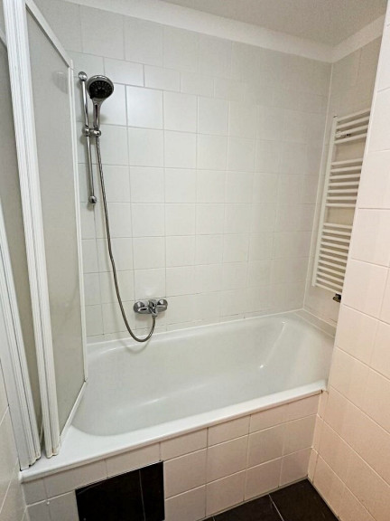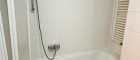 + Badezimmer mit Badewanne, Waschtisch und Waschmaschinenanschluss