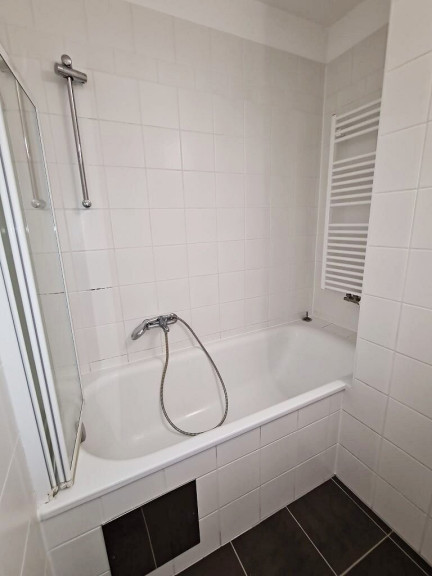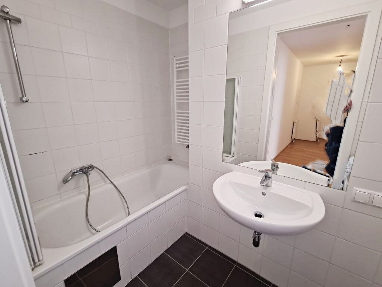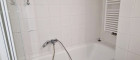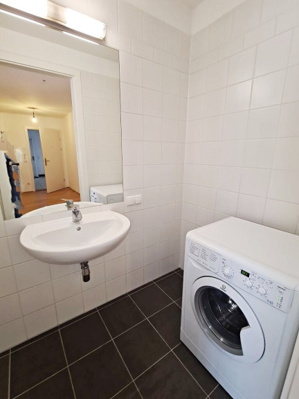 + Badezimmer mit Badewanne, Waschtisch und Waschmaschinenanschluss