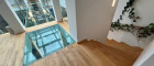 Obergeschoß mit Parkett und Sanitärräume mit Steinzeug: