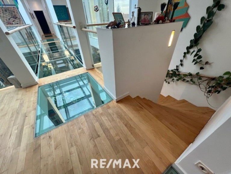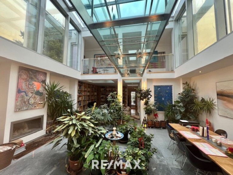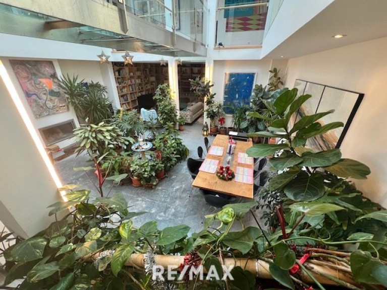 Diese Villa besticht durch ihre moderne Architektur, das Atrium und viele Glasflächen lassen interessante Durchblicke zu.