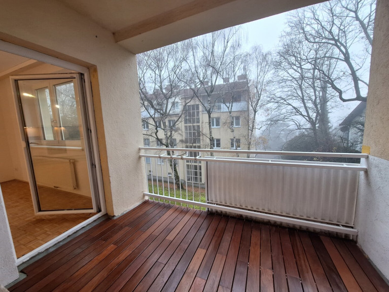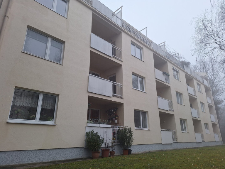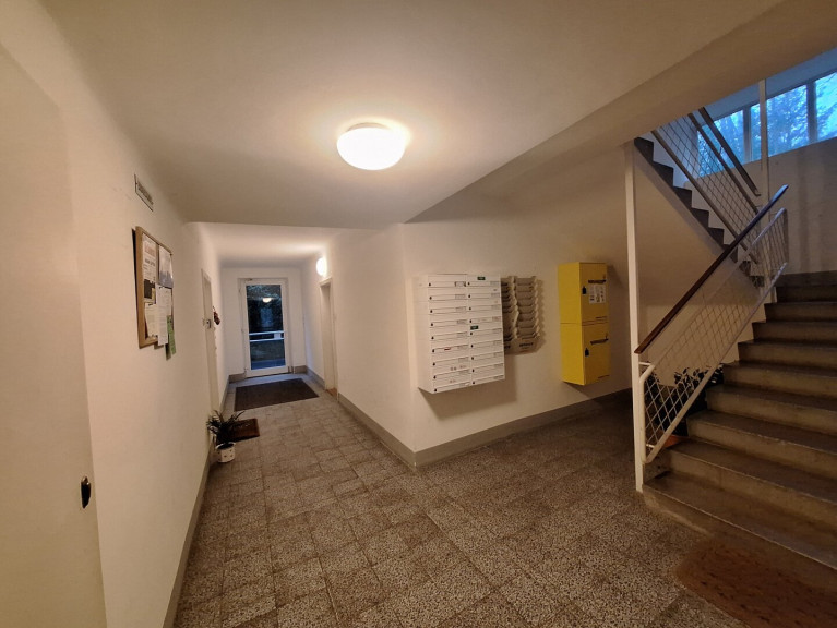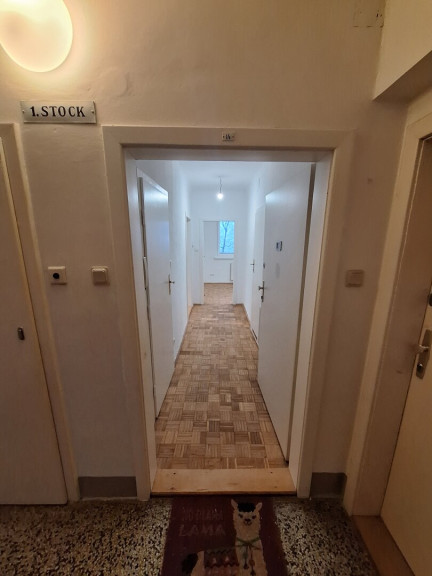 Die Wohnung selbst befindet sich im 1. Obergeschoss (kein Lift),eines sehr gepflegten Neubauhauses (Baujahr ca.1960), ist südseitig orientiert und das Gebäude selbst ist in eine gepflegte Grünanlage eingebettet.