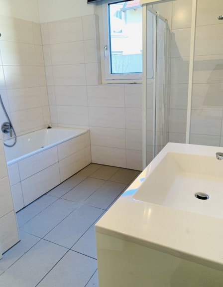 - Badezimmer mit Badewanne und Dusche (mit Fenster)