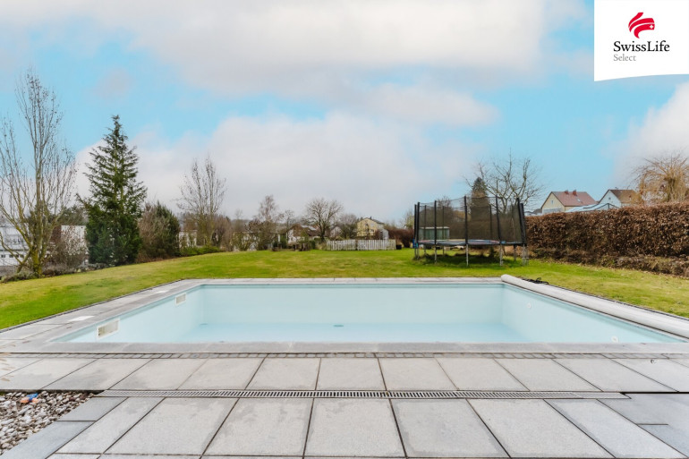 Ein besonderes Highlight ist der private Außenbereich mit beheizbarem Chlorpool (8 x 4 m) – Ihr persönlicher Rückzugsort für entspannte Sommertage, sportliche Bahnen oder exklusive Poolabende. Die Pooltechnik befindet sich im Keller.