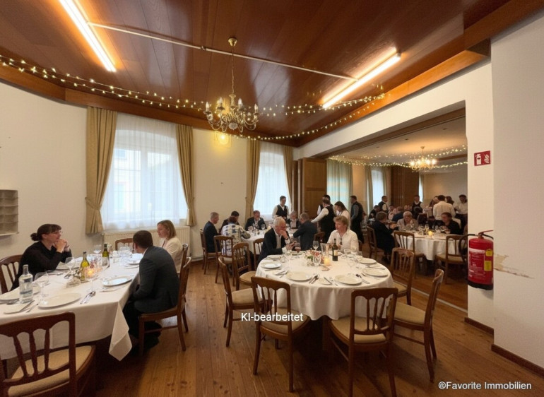 Die Gastronomie ist bereits bestens ausgestattet und wartet nur darauf, von Ihnen belebt zu werden. Genießen Sie die hochwertigen Fliesen und das stilvolle Parkett, die nicht nur eine ansprechende Optik bieten, sondern auch pflegeleicht sind. Die integrierte Einbauküche ist perfekt für die Zubereitung köstlicher Speisen und vereinfacht die Abläufe in Ihrem Gastronomiebetrieb.