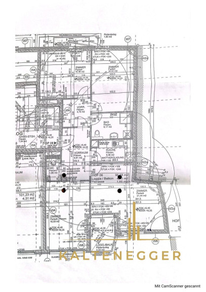 Die Bürofläche beträgt ca. 96,58 m² zuzüglich der Loggia und der Terrasse.