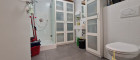 Das Badezimmer ist mit einer Dusche und einem WC bestückt, die Möglichkeit eine Waschmaschine und einen Trockner zu platzieren ist gegeben. Ein 2. WC mit einem Handwaschbecken befindet sich separat.