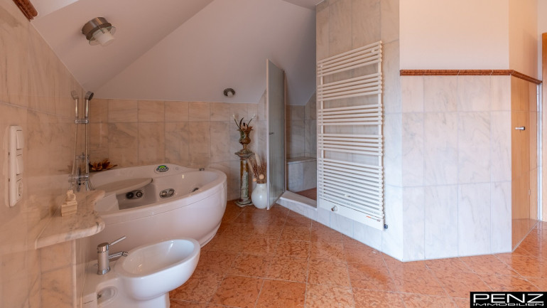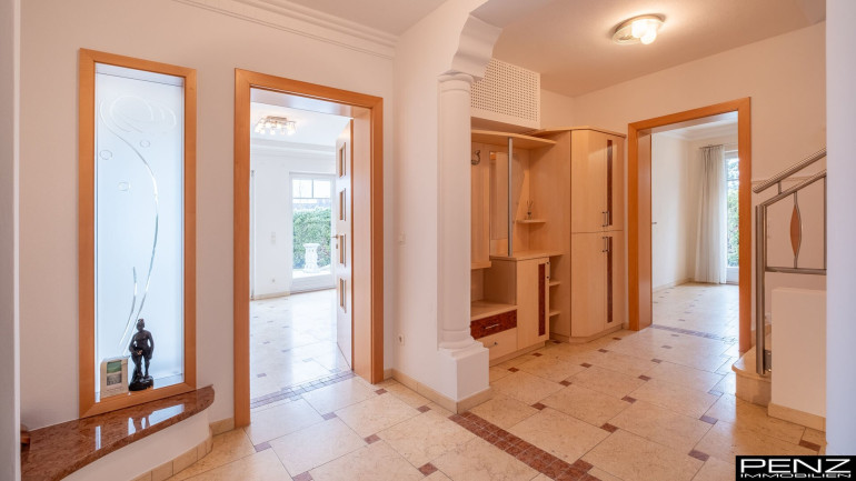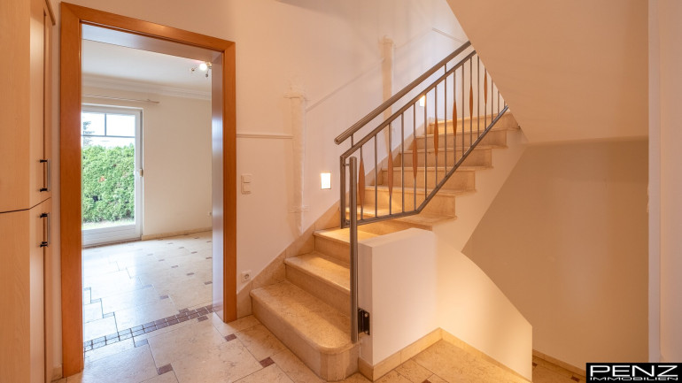 Die hochwertige Ausstattung, wie die stilvolle Steinmaterialen, schaffen eine elegante Atmosphäre, während die Fußbodenheizung für wohlige Wärme sorgt. Der Kamin im Wohnzimmer bietet an kalten Winterabenden eine gemütliche Atmosphäre und lädt zum Verweilen ein. Die moderne Zentralheizung garantiert zudem eine angenehme Temperatur zu jeder Jahreszeit.