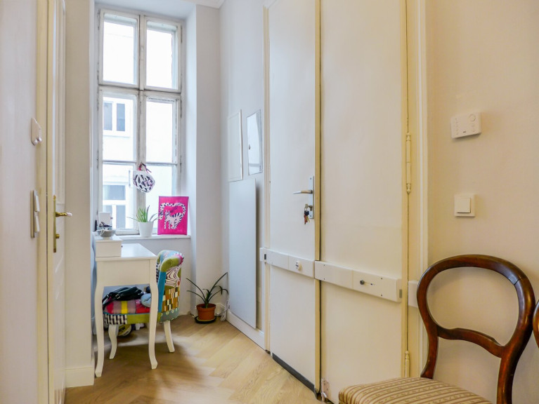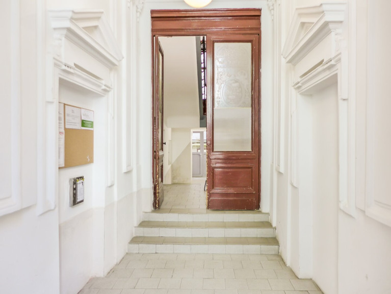 Sie befindet sich im 1. Liftstock (nach dem Mezzanin, somit zweiter Stock) eines geschmackvoll erhaltenen Stiegenhausesmit gusseisernem Treppenaufgang und Personenaufzug. Großzügige Fensterfronten sorgen für lichtdurchflutete Räume und ein angenehmes Wohnambiente.