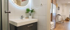+ Badezimmer: Das Badezimmer mit komfortabler Dusche sorgt für eine angenehme und entspannende Atmosphäre.