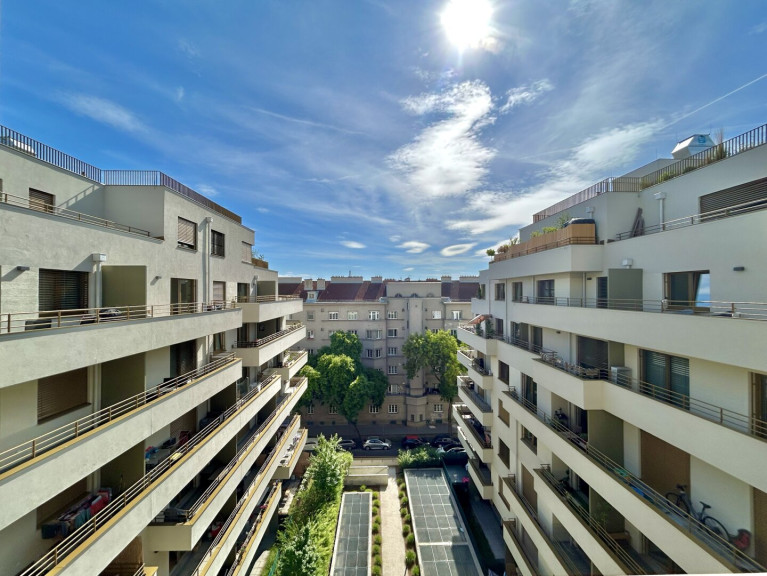 Dadurch bietet sich den Hausbewohnern eine Vielzahl an Erholungsmöglichkeiten außerhalb der eigenen vier Wände. Sei es auf einer der Dachterrassen mit einem unvergleichbaren Blick über Wien oder in einem der begrünten Innenhöfe.