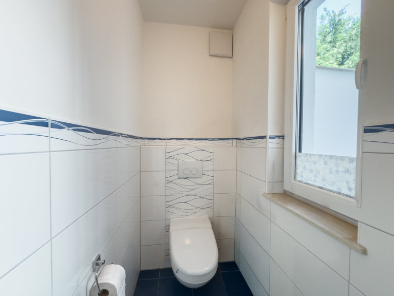 Ausgestattet ist die Maisonettewohnung außerdem mit Parkettböden, Fliesen in den Nassbereichen, elektrischen Jalousien und einer Klimaanlage. Eine elektrische Markise auf der südseitigen Hauptterrasse ist ebenfalls vorhanden. Geheizt wird mit Gas, die dazugehörigen Geräte befinden sich im Abstellraum. Im Keller des Hauses steht außerdem ein sehr großes Kellerabteil zur Verfügung.