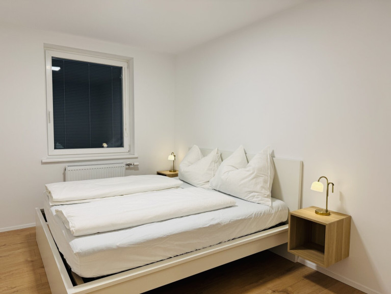 Die Wohnung verfügt über zwei getrennt begehbare Zimmer mit ca. 12 m² und 14 m², die jeweils mit einem Doppelbett ausgestattet sind und ausreichend Platz zum Lernen, Wohnen und Entspannen bieten.