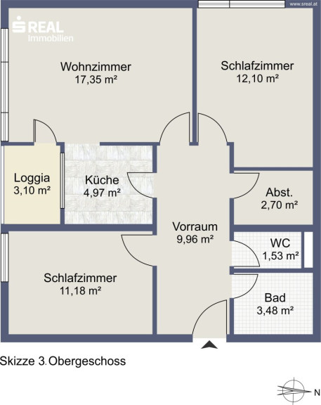 Mit einer Wohnfläche von ca. 63,27 m² und drei lichtdurchfluteten Zimmern bietet diese Wohnung Platz für Paare, Studenten oder eine kleine Familie. Der durchdachte Grundriss sorgt sowohl für Rückzugsorte, als auch gesellige Bereiche.