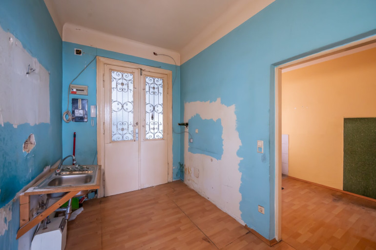 Die Wohnung ist sanierungsbedürftig und verfügt derzeit über keine Heizung und kein Badezimmer/WC.