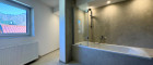 Das Badezimmer ist Ihre private Wellness-Oase: Edle, großformatige Fliesen in Naturstein-Optik, eine Komfort-Badewanne mit Glas-Duschwand und ein Doppelwaschtisch lassen keine Wünsche offen. Weiters ist auch ein Waschmaschinenanschluss vorhanden.