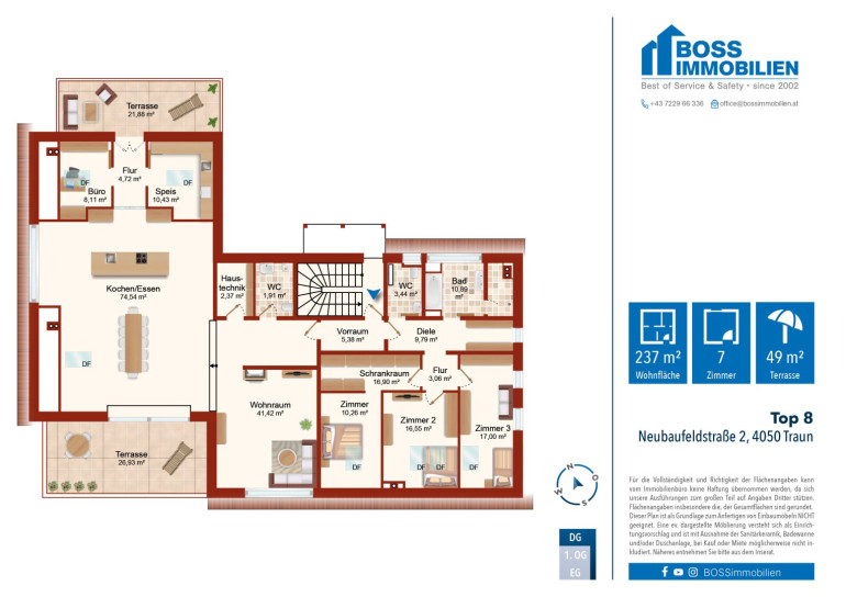 Die ca. 200 m² Wohnfläche besticht durch Klasse und ist sehr gut strukturiert. Der Wohn-Essbereich mit Küche ist offen gestaltet bietet Ihnen ausreichend Platz.