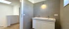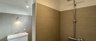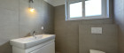 - Bad mit Dusche, Waschbecken und WC