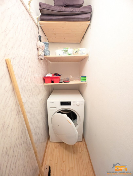 Die Küche ist ebenfalls voll ausgestattet und verbleibt natürlich in der Wohnung. Es ist sogar schon eine Waschmaschine (gegen Ablöse) vorhanden. Alle notwendigen Elektrogeräte sind bereits vorhanden (Kühlschrank, Herd, Kochfeld, Abluft-Dunstabzug, Geschirrspüler).