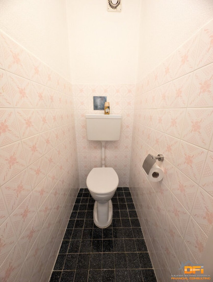 Die Toilette ist klassisch verfliest und räumlich vom Badezimmer getrennt.