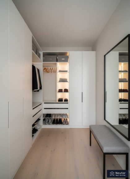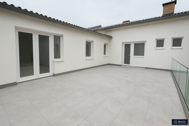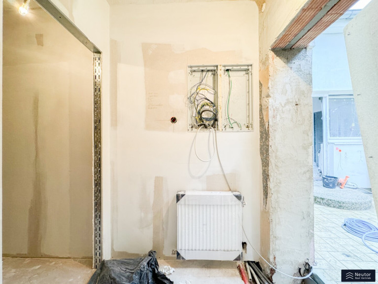 Bereits beim Betreten der Wohnung offenbart sich die gelungene Verbindung aus hochwertiger Sanierung und einladender Wohnatmosphäre. Über einige Stufen erreicht man die neu sanierte Terrasse, die den idealen Übergang zwischen Innen- und Außenbereich bildet. Beim Betreten der Wohnung empfängt Sie ein stilvoll gestalteter Vorraum, der mit einer großzügigen Garderobenlösung ausgestattet ist. Dieser Bereich bietet nicht nur ausreichend Stauraum für Kleidung und Accessoires, sondern überzeugt auch durch seine funktionale Eleganz, die einen ersten Eindruck von Exklusivität vermittelt. Die klare Linienführung und die hochwertigen Materialien setzen bereits hier den Ton für den besonderen Charakter der Wohnung. Zur Linken des Eingangsbereichs öffnet sich die beeindruckende Wohnküche, die mit einer modernen Einbauküche ausgestattet ist. Diese ist nicht nur funktional, sondern begeistert mit ihren durchdachten Stauraumlösungen, die sie zum idealen Ort für kulinarische Kreationen machen. Mehrere Fenster durchfluten den Raum mit natürlichem Tageslicht und sorgen für eine optimale Belüftung – perfekt, um beim Kochen eine frische und inspirierende Atmosphäre zu genießen. Die offene Gestaltung der Wohnküche lädt zu gemeinsamen Mahlzeiten oder geselligen Abenden ein und verbindet Funktionalität mit einem einladenden Flair.Über die Wohnküche gelangen Sie in das luxuriös ausgestattete Badezimmer, das mit einer modernen, bodengleichen Dusche, einem hochwertigen WC und einem eleganten Waschtisch überzeugt. Ein weiteres Fenster sorgt für hervorragende Lichtverhältnisse und eine natürliche Belüftung, die den Raum zu einer Wohlfühloase macht. Das Herzstück der Wohnung ist das großzügig geschnittene Schlafzimmer, das durch seine intelligente Raumaufteilung und seine lichtdurchflutete Atmosphäre besticht. Der Raum bietet ausreichend Platz für ein komfortables Bett, einen geräumigen Kleiderschrank und weitere individuelle Gestaltungsmöglichkeiten. Die ruhige Lage und die harmonische Gestaltung machen das Schlafzimmer zu einem idealen Rückzugsort, der Erholung und Geborgenheit verspricht.