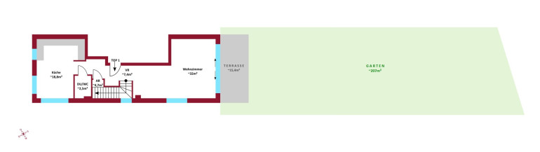 - Top 1: Wohnfläche: ca. 102,5m²; 3 Zimmer; Garten: ca. 207m²; Terrasse: ca. 15,4m²; Kaufpreis: 949.000,-- Euro