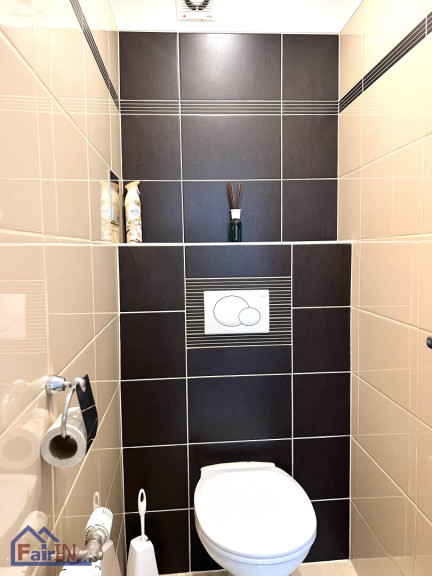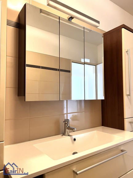 Die hochwertigen Laminatböden schaffen eine angenehme Atmosphäre, während die stilvollen Fliesen in den Nassräumen den eleganten Charakter der Wohnung unterstreichen.