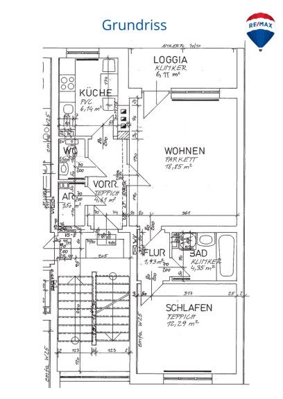 Vorhaus, Küche, Bad und WC getrennt, Das Wohnzimmer mit westseitiger Loggia bietet einiges an Sonne. Das Schlafzimmer ist auf der sonnenabgewandten Seite.
