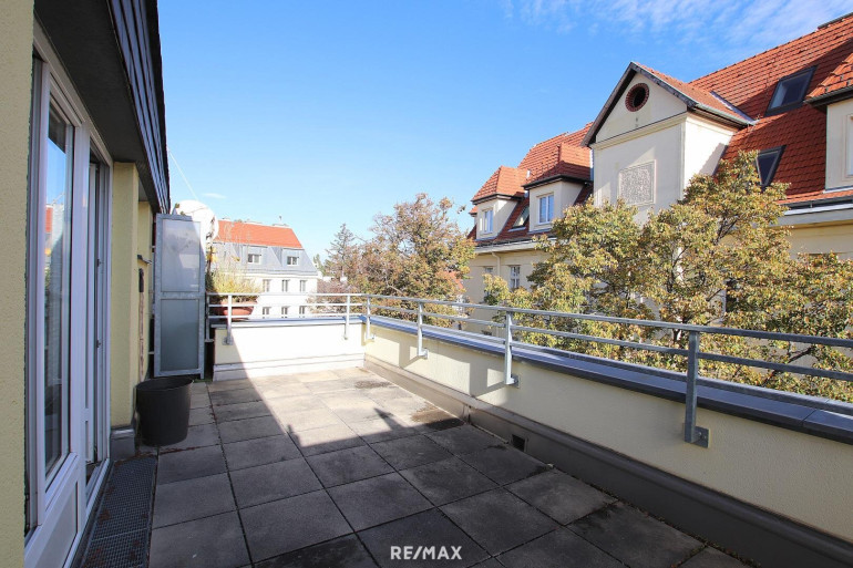 Reizende, helle DG-Garconnière mit großer Terrasse mitten im 13.Bezirk - am Eck der Hietzinger Hauptstraße und Münichreiterstraße. 3.Stock ohne Lift!