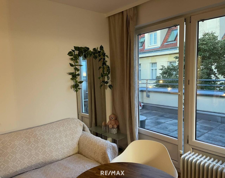 Die freundliche Garconnière mit 18 m² großer Terrasse im letzten (3.) Stock bietet lichtdurchflutetes, charmantes Flair, das dazu einlädt, sich durch die süd-östliche Ausrichtung der Außenfläche fast ganztägig die Sonne auf die Nase scheinen zu lassen, was zugleich das Fehlen eines Liftes in dieser energetisch wertvollen Rückzugsoase wohl entschädigt.