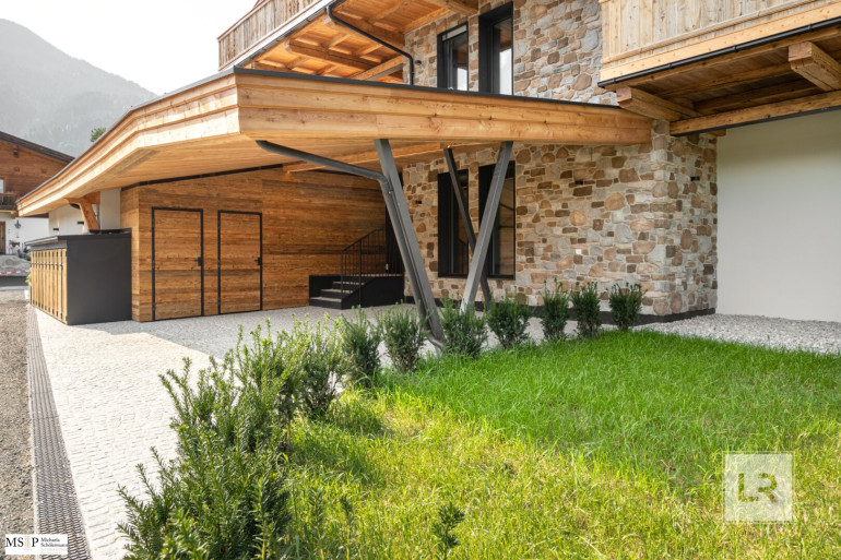 Hochwertige Materialien und zeitloses Design mit alpinem Chic verleihen einzigartiges Flair. Schöne Alu-Holzfenster, Altholzelemente, Eichendielen, Designer-Küchen sowie First-Class Bäder sorgen für edles Ambiente. Ebenso überzeugen die Wohnungen durch moderne Technik mit erweiterbarem BUS-System.