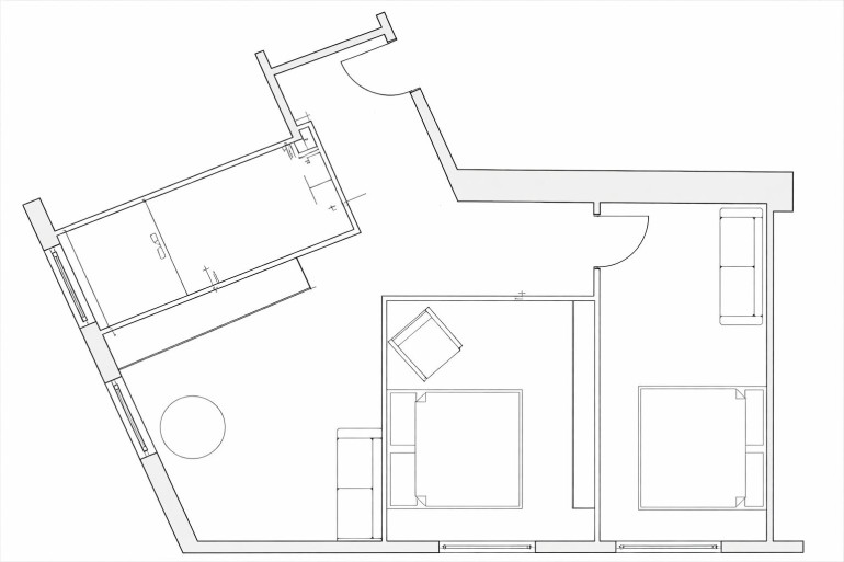 Die rund 57 m² große Wohnung liegt im 1. Obergeschoss und ist bequem mit dem Personenaufzug erreichbar. Der Grundriss ist funktional und gut nutzbar. Zwei getrennte Schlafzimmer bieten flexible Nutzungsmöglichkeiten, etwa für Wohnen und Arbeiten oder als Kinderzimmer.