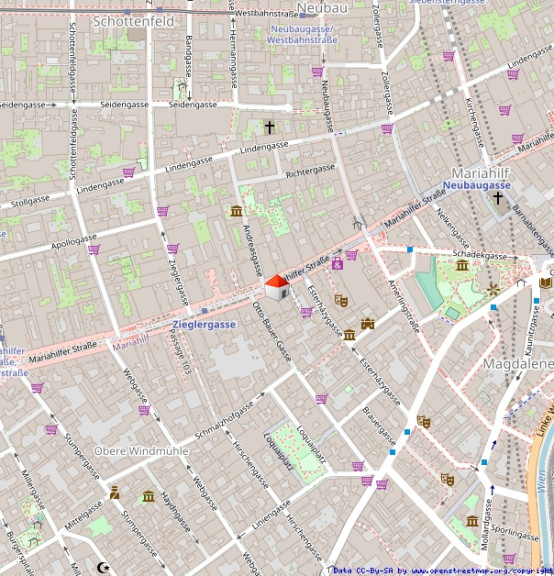Die unmittelbare Umgebung ist geprägt von einer ausgezeichneten Infrastruktur. Zahlreiche Einkaufsmöglichkeiten, Cafés, Restaurants, Banken, Ärzte, Apotheken sowie kulturelle Einrichtungen befinden sich in fußläufiger Entfernung. Besonders hervorzuheben ist die hohe Passantenfrequenz, die sowohl für Geschäfts- als auch für Wohnnutzungen äußerst attraktiv ist. Die öffentliche Verkehrsanbindung ist hervorragend. In wenigen Gehminuten sind mehrere U-Bahn-Stationen (U3 Zieglergasse, U3 Neubaugasse sowie U6 Westbahnhof) erreichbar. Zusätzlich sorgen zahlreiche Straßenbahn- und Buslinien für eine optimale Anbindung in alle Teile der Stadt. Der nahegelegene Westbahnhof bietet darüber hinaus direkte nationale und internationale Bahnverbindungen.