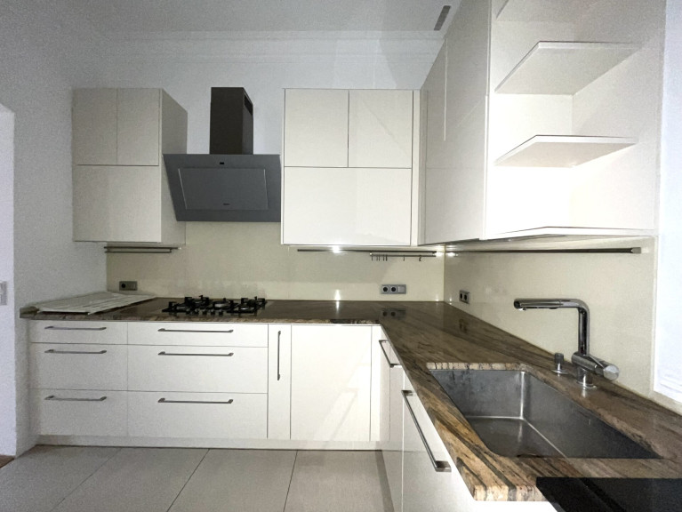Fliesen, Parkett, Etagenheizung, Einbauküche, Wohnküche / offene Küche, Personenaufzug, Badewanne, Dusche