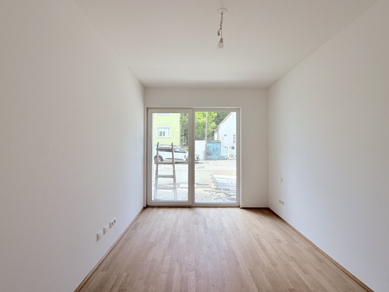 Bei der gegenständlichen Wohnung handelt es sich um eine perfekt geschnittene Dreizimmerwohnung mit Garten und Terrasse im Erdgeschoss eines sehr geschmackvollen Neubauhauses (Fertigstellung November 2025) in Grün-Ruhelage. Diese hochwertig ausgestattete Wohnung verfügt über eine ca. 18 m2 große Terrasse (zzgl. 8m2 großem Garten), welche von allen drei Zimmern zugänglich ist.