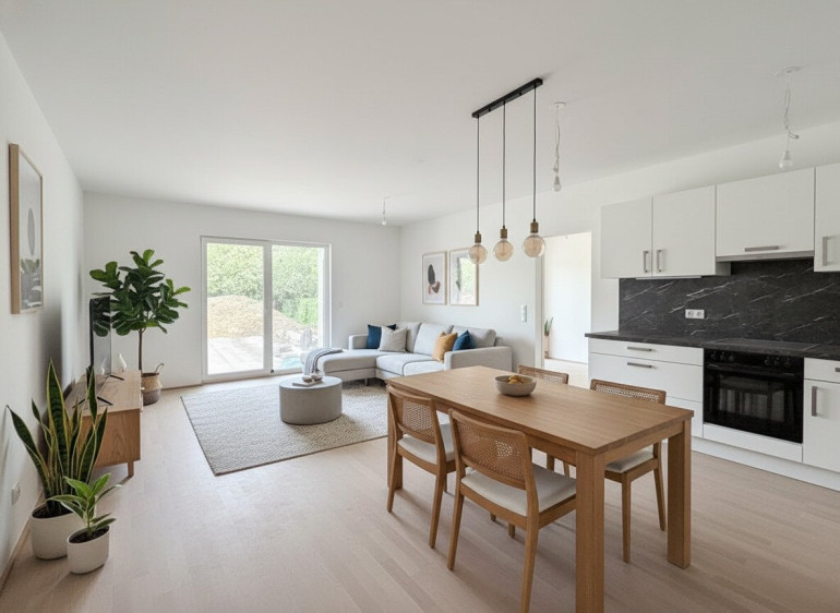 Zum Verkauf gelangt diese perfekt geschnittene Zweizimmerwohnung mit Garten und Terrasse im Erdgeschoss eines sehr geschmackvollen Neubauhauses (Fertigstellung November 2025) in Grün-Ruhelage. Diese hochwertig ausgestattete Wohnung verfügt über einen ca. 37 m2 großen Garten, welcher von beiden Zimmern zugänglich ist.