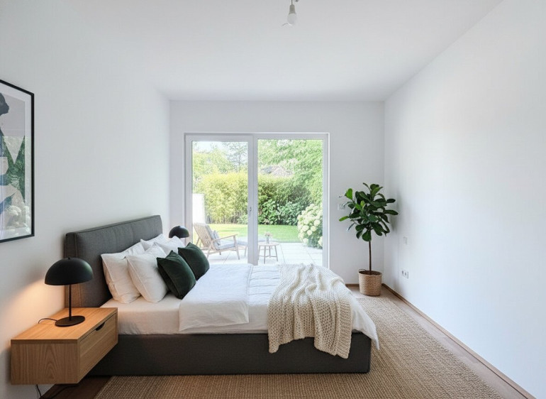 - Schlafzimmer mit Zugang zum Garten