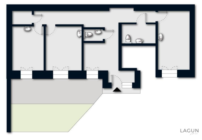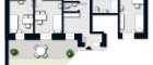 + Terrasse (Diese kann über Terrassentüren im Empfangsbereich sowie Zimmer 1, 2 und 3 betreten werden!)