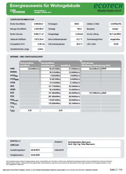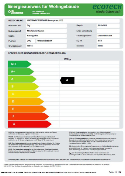 | Heizwärmebedarf: | A 21,60 kWh/m²a |