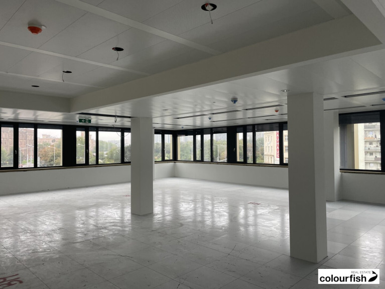 Das Bürogebäude umfasst rund 7.500 m² Nutzfläche, verteilt auf neun Obergeschoße. Die Büroebenen sind offen konzipiert und bieten pro Regelgeschoß bis zu 880 m² flexibel gestaltbare Mietfläche. Dadurch lassen sich unterschiedlichste Arbeits- und Organisationsformen umsetzen – von klassischen Einzel- und Gruppenbüros bis hin zu großzügigen Open-Space-Konzepten.